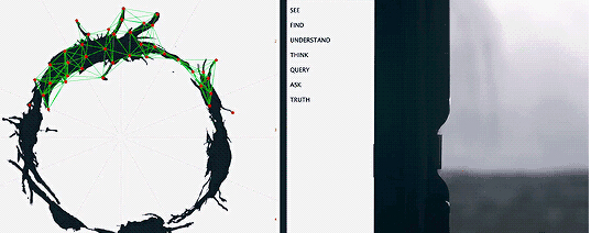 电影中一开始,被神秘气氛烘托的外星生物,在一片朦胧的背景中,呈现出像是蜘蛛、章鱼但是又巨大无比的特性,它们通过触手喷出墨水来写字,这一系列概念叠加起来,显得怪异而又充满神秘气息,也因此,让人大开眼界。