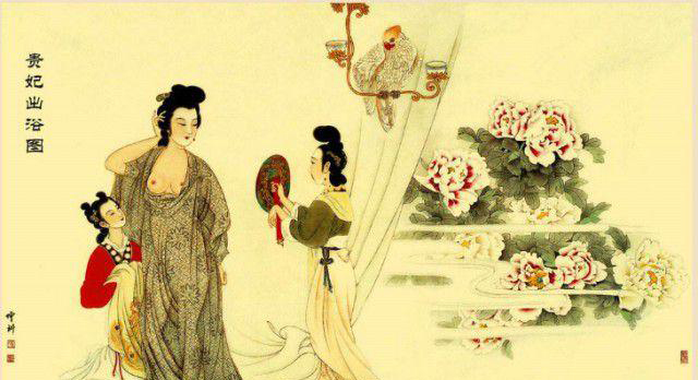 近臣高力士进奏说寿王妃杨氏姿色无双、倾国倾城,长得颇似惠妃。玄宗便叫高力士传旨宣召杨玉环入温泉宫,这一看不要紧,只见杨玉环肌态丰艳,顾盼生情,果然是沉鱼落雁,玄宗当下命她宽衣解带,沐浴华清池。杨玉环依稀有当年武惠妃的影子,但更多了些野性和放荡,而这正是玄宗从不曾感受过的。