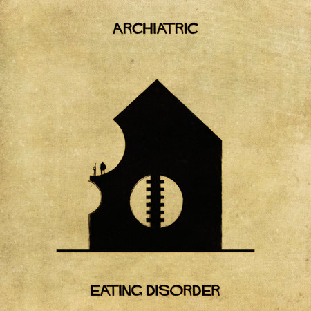 解析-暴食症状经常来自于内心的压力与焦虑,好比这栋房子,表面上吃了两大口,然而内在空缺仍旧无法弥补。