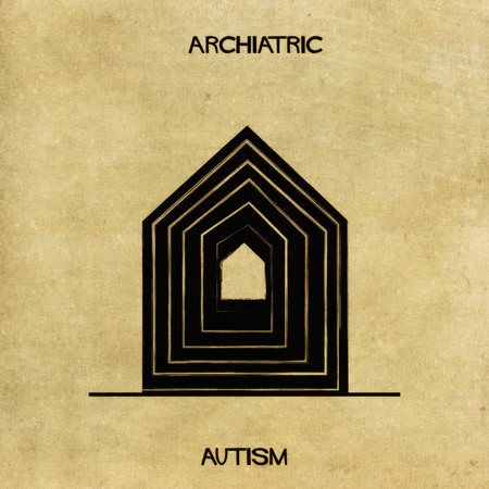 解析-自闭症谱系障碍是一种从发病表现到严重程度都有所不同的多元性病症,一般定义指标有三大项:社交能力缺失、沟通能力缺失,及一成不变的重复行为。这栋房子向内循环的同心框框,即在说明患者的内心状态。