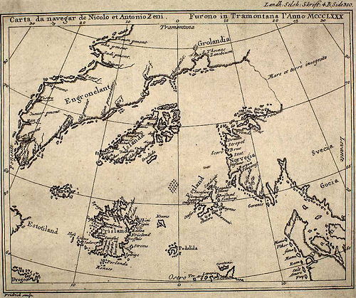 最神秘的地图是“齐诺地图”(Zeno Map)。在西元1380年发表,这份令人费解的地图精准描绘了现代国家的海岸线,例如挪威、瑞典、丹麦、德国还有苏格兰。神奇的是,这份古地图也绘出很多岛屿的“准确”经纬度。这真是一个难解的谜,因为用于测量经度的必备工具,也就是经线仪,是在1765年才发明的。如果这还不够神奇,那么…齐诺地图还绘出了无冰河的格陵兰岛,这表示在冰河时期之前,有人已用某种方法标注此地了。
