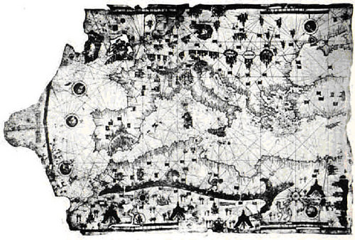 另一张使人吃惊的地图绝对是“耶胡迪.伊宾.班札拉地图”(Iehudi Ibn ben Zara map)。它制于西元1487年,上面有英国冰河的遗址,还极详细的描绘地中海、爱琴海域的岛屿。而今那些岛还存在,但由于海平线上升,它们已沉入水中了。