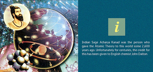 原来远在两千五百年前、早在道耳顿之前,有个古印度哲学家卡夏普发现原子理论。人们称他为肯亚德(Kanad),因为肯(Kan)在古梵语中代表“最小粒子”,曾有人看到他在前往圣帕亚(Prayag)朝圣的途中,到路边搜集谷粒。他对这些小颗粒很着迷,所以开始搜集。肯亚德也提出了这个概念:原子(anu)会以不同的形式互相结合,此形式会随当下的因素(例如热度)产生化学变化。为了提供更简单的说明,肯亚德举了个例子:陶锅变黑、水果成熟。