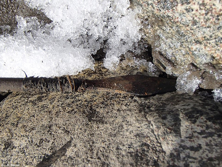 他们看着冰的边缘,发现了木材、纺织品、皮革和其他有机材料。