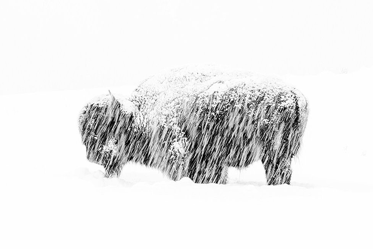 每年的野生动物摄影大赛都一定会有震慑人心的黑白照片。这张野牛的照片是在美国黄石国家公园(Yellowstone National Park)拍摄的,大雪中野牛用脸部来回摩擦雪地,这样才能吃到被雪掩埋在下面的草。