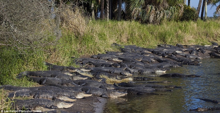 上百只短吻鳄竟聚集在同个水坑边晒太阳!这样惊奇且可能令人有些畏惧的照片是在佛罗里达州的Myakka River State国家公园,由摄影师李道顿 (Lee Dalton) 拍下,他表示这边的短吻鳄多到用Google卫星照片都能看见!