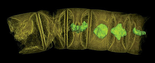 这个植入物是由导电聚合物的薄层所制成,放在丝质基座上,并且覆盖着半导体聚合物。