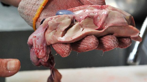 对河豚的正确处理方法是要剔除其有毒部分,它们包括鱼脑、鱼皮、眼睛、卵巢、鱼肝、和鱼肠。