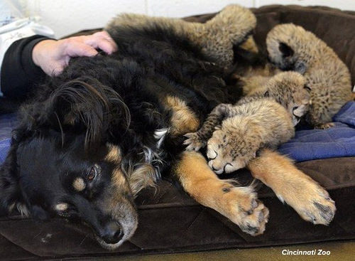辛辛纳提动物暨植物园(Cincinnati Zoo and Botanical Gardens)征求“保姆狗”,帮忙照顾被妈妈无视的3只幼狮。