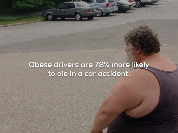 19. 过胖的司机在车祸中的死亡率比一般人高78%。