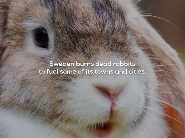 26. 瑞典会焚烧兔子的死尸来充当某些城镇的燃料。