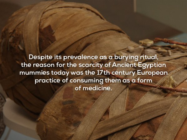 5. 虽然木乃伊在古埃及时期是很盛行的安葬形式,但现今所发现的木乃伊遗骸却少之又少,那是因为17世纪欧洲一度流行以木乃伊为食的治病方法。