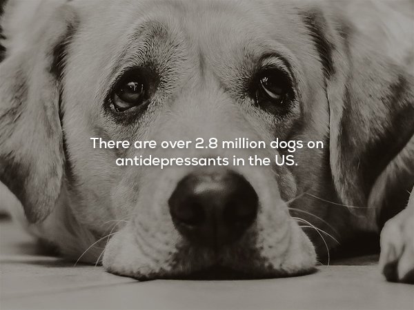 22. 美国一共有超过280万只狗狗有在服用抑郁药物。