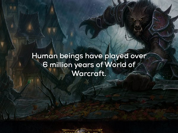 15. 人类游玩《魔兽世界》的时数加总一共多达6百万年。