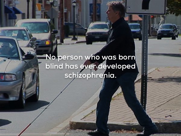 13. 从未有天生眼盲的人罹患精神分裂症。