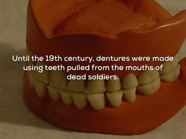 11. 一直到19世纪以前,假牙都是用士兵尸体的牙齿做的。