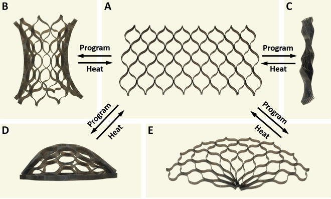 Qi说,新的4D列印法大胆迈入四维空间,靠的是称为形状记忆聚合物(SMPs)的材料。以先进电脑程式设计的形状记忆聚合物,它包含2种或更多种合成物,每一种都有不同的温度特性。