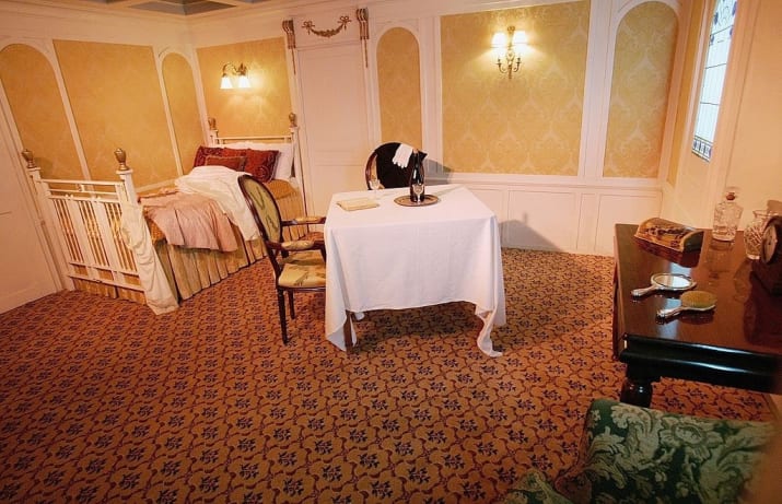 16. 当时头等舱的房间,票价是2560美金,以1912年时的通胀率来换算的话在2017年约是62290美金。买了这张票的人是夏洛特 (Charlotte Drake Cardeza) ,这间套房有2间卧室、1间客厅,再加上2间更衣室和1间浴室,除此之外她还有一个长50英尺 (约15公尺) 的私人甲板空间可以散步。
