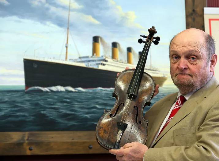 11. 在泰坦尼克号沉没时用来演奏的小提琴,它在2013年时以170万美金被拍卖出去。拍卖行的亨利·阿尔德里 (Henry Aldridge) 和他的儿子们花了7年的时间证明这把小提琴是真的,而且是属于泰坦尼克号的乐队领导者华莱士·哈特利 (Wallace Hartley) 。