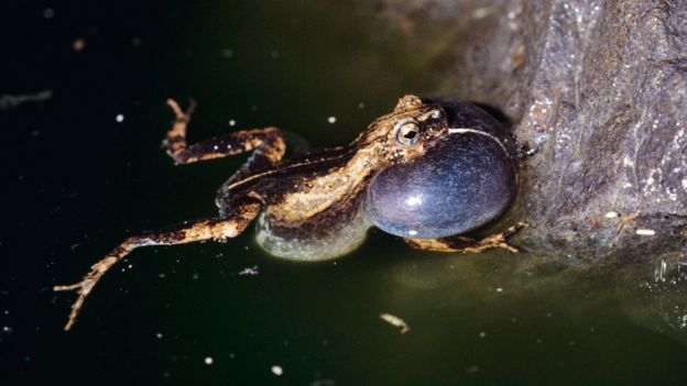 生活在墨西哥和南美洲北部地带的通噶拉青蛙(Tungara frog)能发出一种很有特色的叫声吸引雌蛙交配。