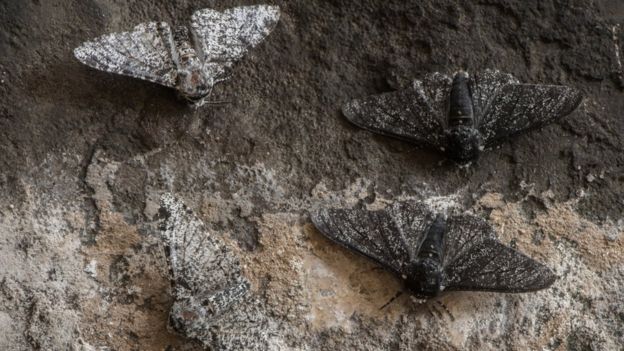 在英国高度工业化的几十年间,这些斑点蛾身上的很多黑色斑纹在城市环境中出现变色。