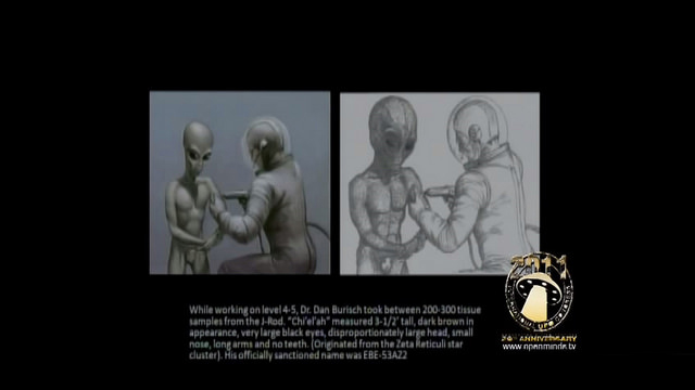 4-5层的 J-Rod 来自15光年远的星球,1953亚利桑那州 Kingman 坠毁;之所以说是 extraterrestrial 是指来自未来有着人类的血统!(是美国跟小灰人秘密基因工程的未来混种?)