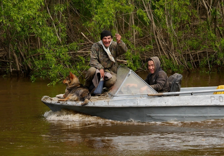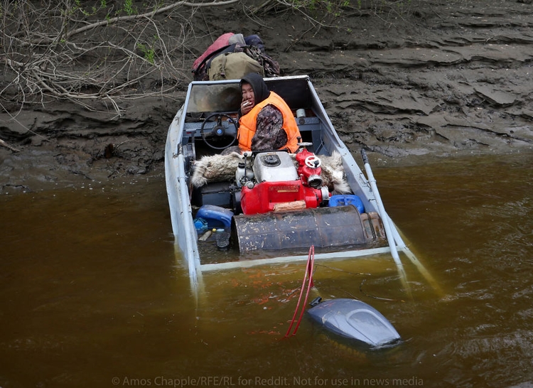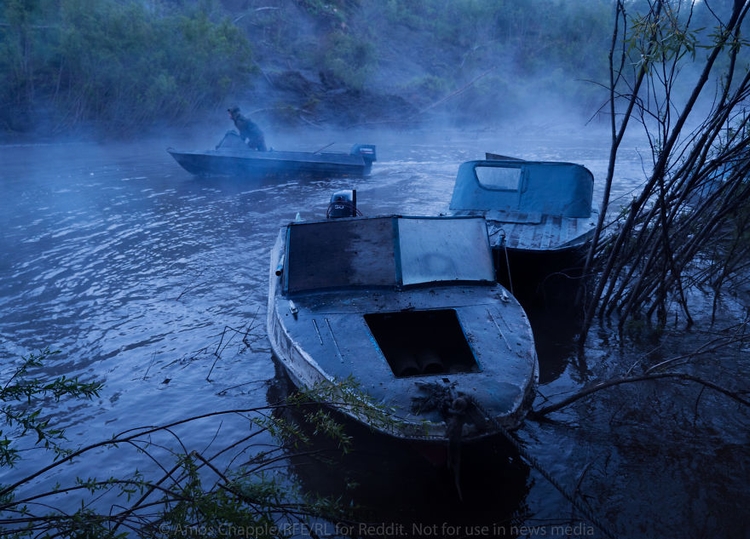 为了节省成本,这名年轻盗采者自行将一台苏联时期的雪地车引擎改造成抽水机。