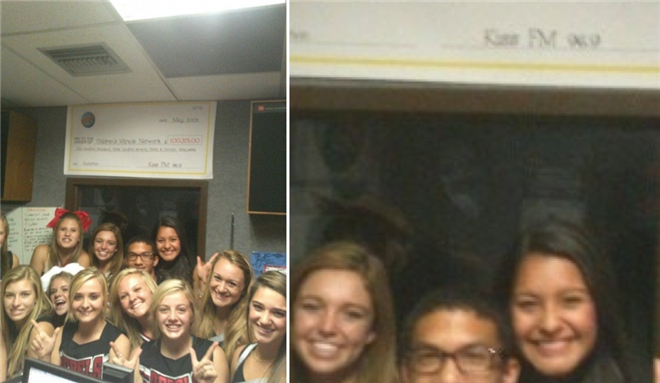 这张在Kiss FM电台拍摄的合照,群众后方玻璃门上居然浮现一张鬼脸…