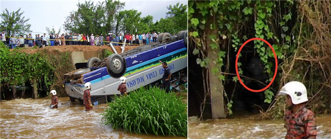 远看就是一般的车祸意外,但如果把照片放大,桥墩下明显有一张直视镜头的鬼脸…