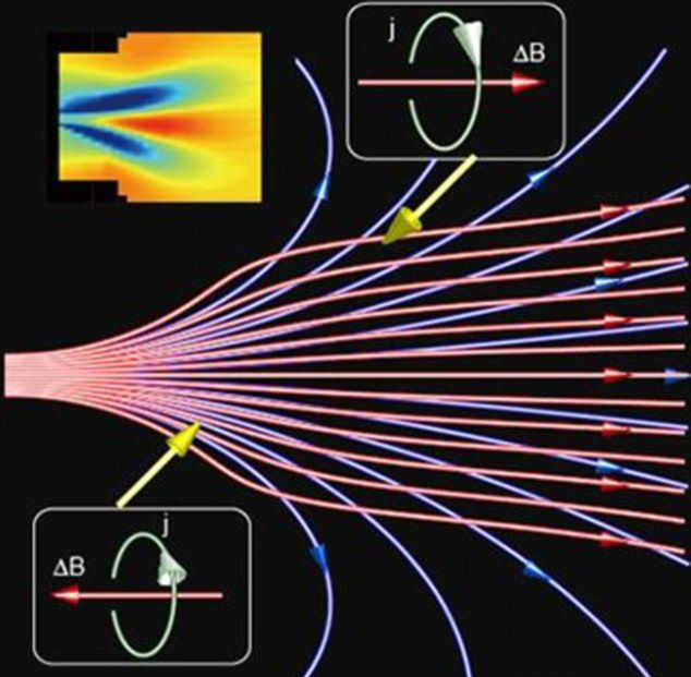藉由移动带电粒子来产生磁场,因此,这些日本研究人员利用电浆来改变系统的整个磁场。以这样的方法,该团队能够创造出拉长的磁场,并且观察它。