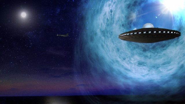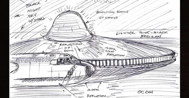 飞机飞到太平洋上空时发现一个直径约四分之一到半英里的 UFO!它有一个圆顶在上面半透明还会从里面发光!