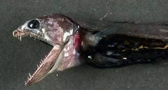 这鱼看起来跟天外来客一样,长得真的真的很是奇特呀,小密觉得长得真的很让人不舒服的,这就是叉齿鱚。有着比身体大很多的肚子,正因为有了这样的肚子能吞下一整条鱼,吃掉比它大还几倍的猎物。