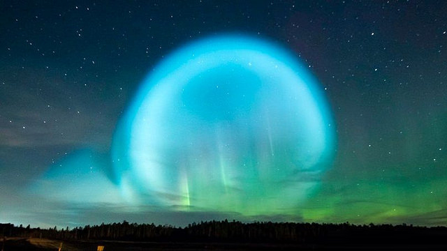 西伯利亚摄影师Sergey Anisimov正在准备捕捉北极光,当他看到天空中的光球。