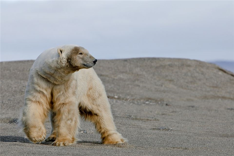 海岸上,有一条搁浅在沙滩上、已经死亡的鲸鱼。北极熊发现后,马上带家人过来用餐。报道指出,目前生活在大自然中的北极熊有约2.5万只,当中大部分都有粮食短缺的问题,因为他们的家园正在融化。