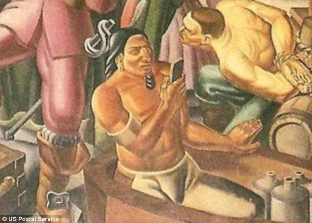 智慧型手机大概在10年前面世,不过日前有美国专家在麻州一幅主题是17世纪、在1937年绘制的壁画中,发现“智慧型手机”的存在!这幅壁画名为《品钦先生与移居春田市》(Mr. Pynchon and the Settling of Springfield),是意大利艺术家罗马诺 (Umberto Romano) 在1937年绘制的作品,描绘被美洲原住民包围的英国殖民地官员兼商人、麻州春田市的开垦领袖品钦 (William Pynchon)。画中右下角的美洲原住民,专注地看着一个黑色的长方形物体,跟现在的“低头族”几乎一模一样,难道这真的是“时光旅行”吗?!