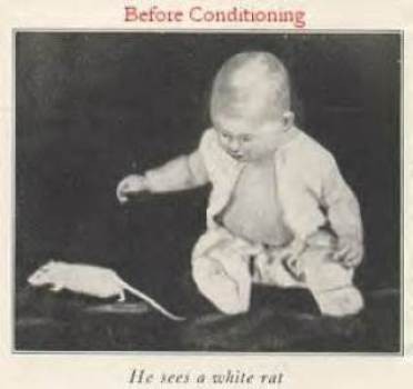 1920年,华生从医院选了一位9个月大的婴儿,小艾伯特(Little Albert)。小艾伯特的母亲,一听到自己每天可以拿到几美元的实验费,很快就答应了,但当时她并不知道自己的儿子即将面临什么。