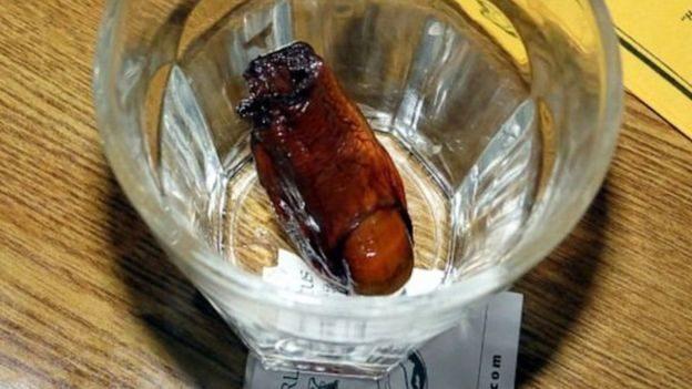 加拿大道森市一间饭店地下酒吧Sourdough Saloon一项流传几十年的传统特产:酸脚趾鸡尾酒 (Sourtoe Cocktail)。像木乃伊一样干瘪瘪的东西,就是货真价实人类的脚趾!