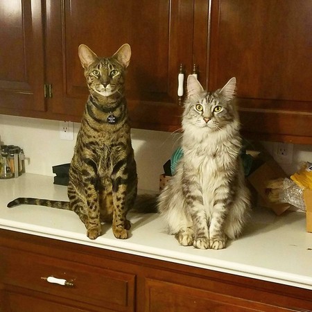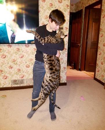 这次官方测量还发生了另件小插曲,金氏世界纪录审查委员在这一户人家还发现了另外一只特别的猫咪,也帮它做了测量,立刻认证它是“现存世界上最高的猫咪”,高达19.05英寸(48.4厘米)!伸长身体站起来,就像一只小花豹一样。一个主人同时拥有两只世界之最猫咪,可说是超级难得,也让他得意PO网分享。