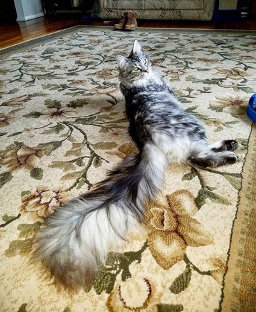 乍看之下只是普通美喵,这只缅因猫却拥有世界长的尾巴。