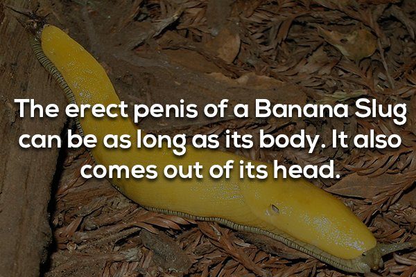 8. 香蕉蛞蝓的生殖器可以长到跟身体一样长,而且是从头部伸出来。