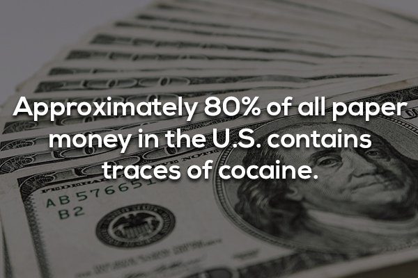 3. 美国大约有80%的纸钞沾有古柯碱。