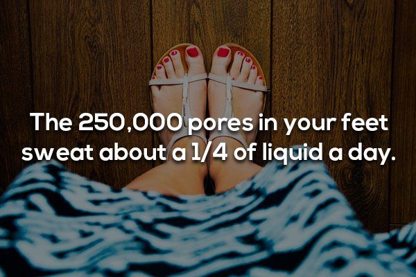 15. 你双脚上的25万个毛孔一天能排出1/4的液体。