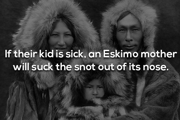 12. 爱斯基摩小孩生病时,妈妈会把鼻涕从他们鼻里吸出来。