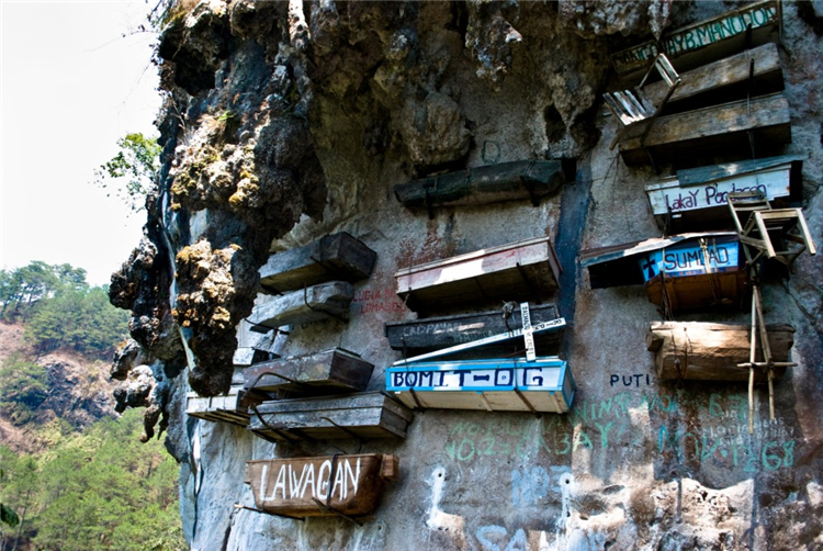 5. 菲律宾萨加达,悬棺。当地居民的棺材是悬在石头上而不是埋在地底,但是这种葬法只有结了婚而且有孙子女的人才能用,当地人相信棺材悬的越高,灵魂就越接近天堂。不过如果要来这里,可能别太期待住宿品质,附近最好的饭店也只有两星,可能连热水都没有。
