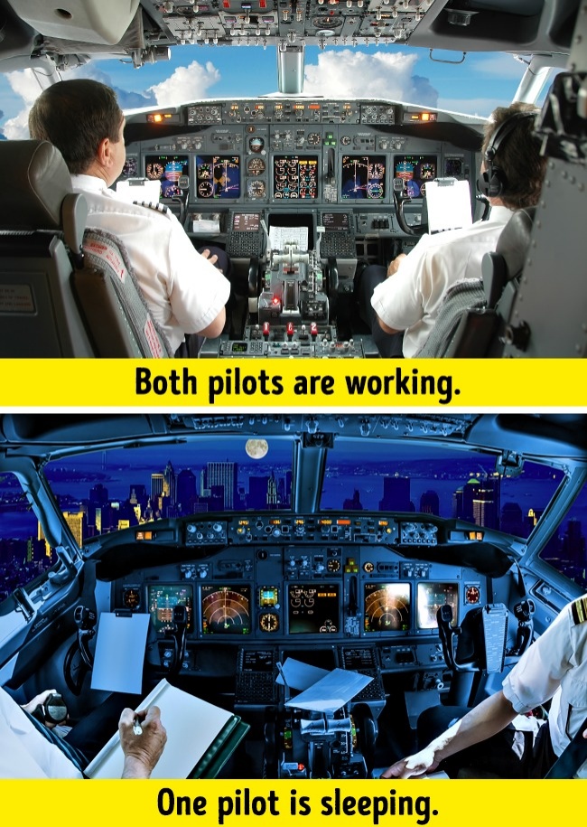 约有56%的机师曾在飞行时睡着。幸好现代飞机通常有自动模式,且塔台会持续与机师保持联系,确保至少有一位机师在掌控著飞行。长途飞行通常会安排3个机师让彼此轮流休息,他们会睡在一个特别的房间。