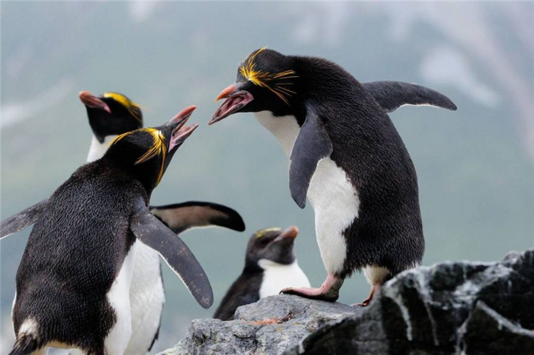 大多数鸟类实际上都是一夫一妻制的,但没有鸟类像马可罗尼企鹅一样忠诚。当他们看到对方时,会鼓起胸膛,左右摆动头开始跳舞,并发出咕噜的声音,当生下孩子后,爸爸会负责照顾小企鹅,而妈妈则会外出寻找食物。