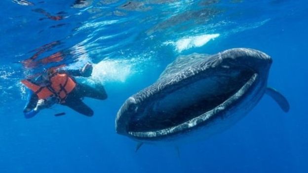 鲸鲨虽然是海洋中体积最大的鲸鱼,但它靠吃浮游生物、甲壳类动物以及小鱼为生。
