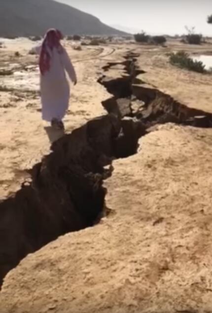 无独有偶,地球的另外一端,沙特阿拉伯的沙漠地区也出现类似的情况,上月底,一条巨大的裂缝将利雅德(ar-Riyāḍ)的地表一分为二,至于原因目前仍不得而知。