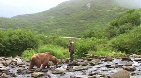 在镜头中,那个热血的提姆崔德威(Timothy Treadwell)永远猜不到,致力保育灰熊13年来,自己的结局只能这样落幕。他与女友双双葬身于灰熊之腹,摄影机录下了人类与灰熊搏斗的声音、尖叫与哀鸣。最后这段悲剧被导演韦纳荷索(Werner Herzog)拍成纪录片——《灰熊人》(Grizzly Man)。