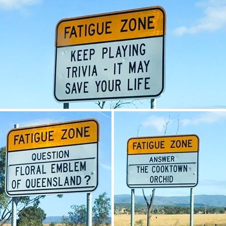 4. 澳洲的路又长又无聊,所以必须给司机一些娱乐。 (请持续玩猜谜,它可能会救你一命)